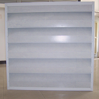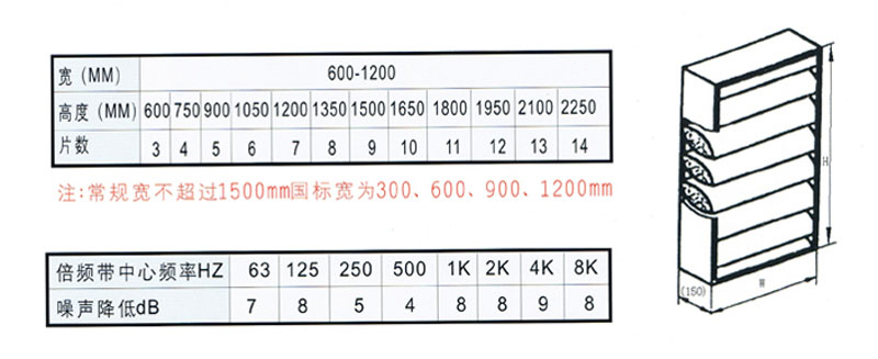 采用熱浸鋅鋼板的材料,也可以用鋁式不銹鋼的材料。其吸聲采用小橢圓翼形的阻性吸聲片,用于阻隔室內外之間的環境噪聲,使空氣得到充分的流通。可以平嵌入方式安裝在磚石或其它建筑結構之中,或可獨立的阻隔擋板墻。